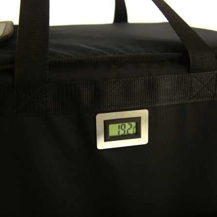 Наличие датчика температуры позволяет контролировать температурный режим доставки продуктов питания, а магнитные замки дают возможность при открытии и закрытии держать термосумку в одной руке.